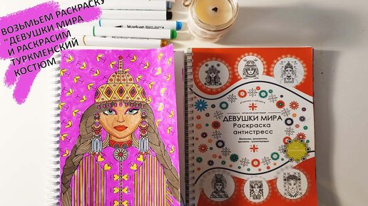 Раскрашиваем антистресс-раскраску “Девушки Мира”. Декабрь 2022. Туркменский костюм.