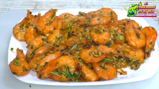 Жареные креветки ВОК с чесноком и зелёным луком, очень просто быстро и вкусно !