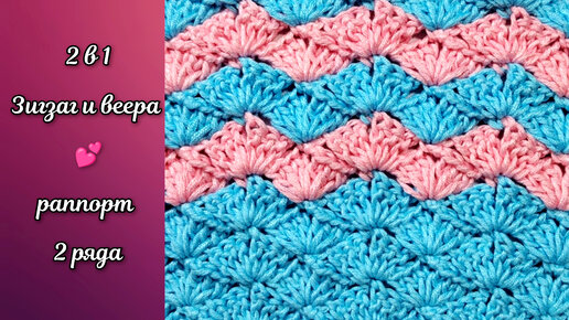 Узор 2 в 1, "Веера" и "Зигзаг" 🥰 Узоры крючком. Вязание крючком.