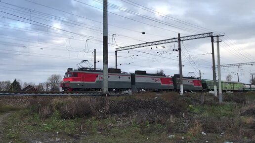 Электровоз ВЛ11.8-601/600Б с грузовым поездом и тепловоз ТЭМ14-0080