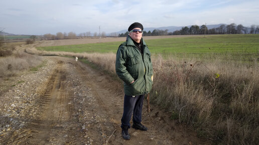 Болгария. 10.12.2022.На прогулке за селом с Сергеем, Мартой и Тосиком.