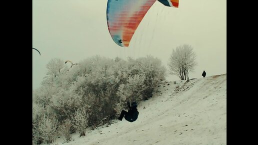 Юный пилот сверхлёгкой авиации в полёте с горки на параплане. Парапланеризм. Полёты на параплане с горки в динамике. ТО - Мастер посадки