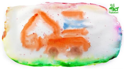 Оранжевый Экскаватор, Акварелька, пошаговые уроки рисования для детей.