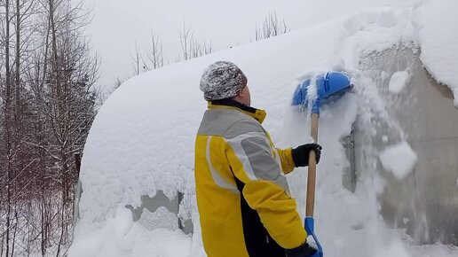 Счищаю снег с теплицы
