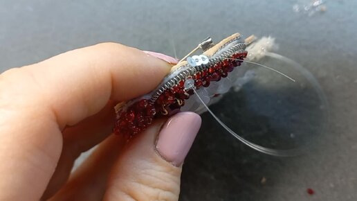 Как оформить край броши пайетками и бисером