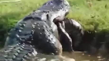 Гигантский аллигатор, снятый на камеру, поедает аллигатора поменьше