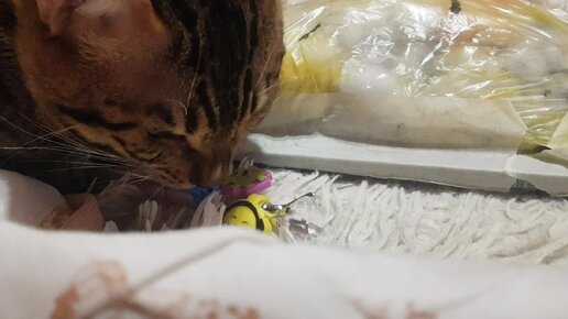 Кот пытается открыть самодельный сквиш
