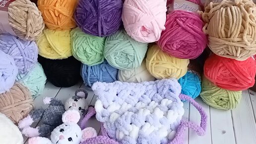 Купила пряжу, новые оттенки. Связала малышей в корзинку.