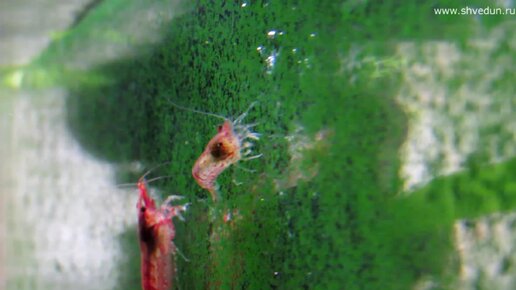 Вишневые креветки в аквариуме (Neocaridina heteropoda) объедают водоросли
