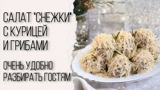 Салат снежки с курицей, шампиньонами и маринованными огурчиками