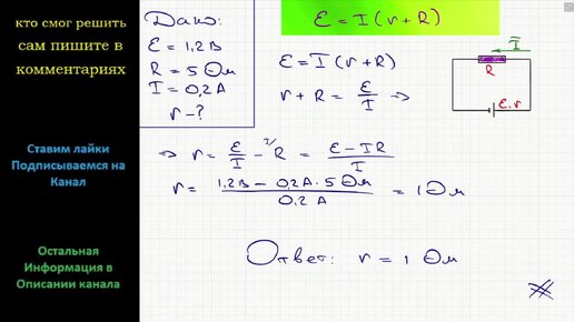 Физика Каково внутреннее сопротивление элемента, если его ЭДС Ɛ = 1,2 В и при внешнем сопротивлении R = 5 Ом сила тока I = 0,2 А?