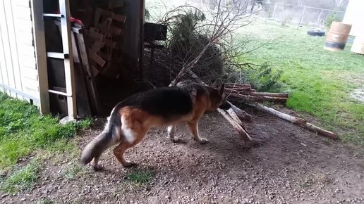 Далее: Немецкая овчарка любит бывать в гараже.