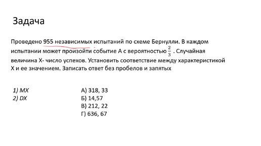 Определение математического ожидания и дисперсии биномиального распределения (B1)