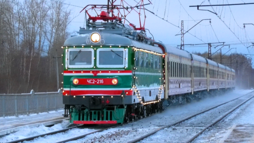 "Возвращение легенды". ЧС2-216 с поездом "Уральский экспресс" Верхняя Пышма — Екатеринбург