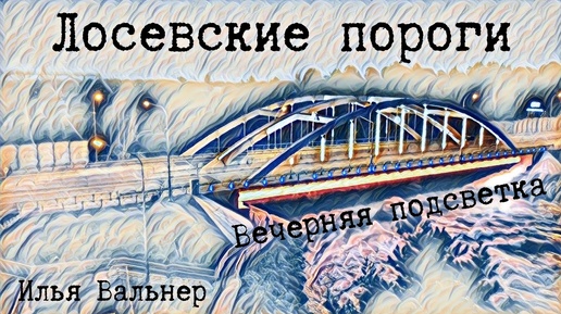 Лосевские пороги и мост с вечерней подсветкой.