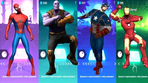 SPIDERMAN VS THANOS VS CAPTAIN AMERICA VS IRON MAN - Tiles Hop - EDM Rush