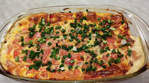 Просто заливаю куриное филе,помидоры и в духовку- завтрак,обед или ужин! Омлет с курицей в духовке