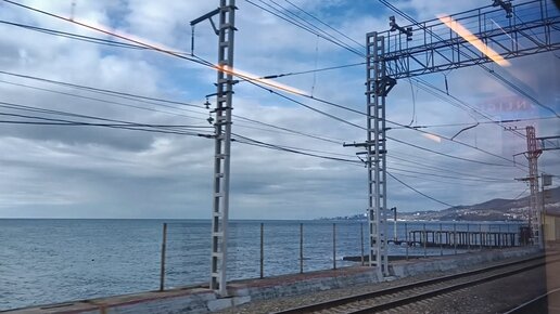 Начало декабря 2022, едем на "Ласточке" от железнодорожного вокзала Адлер на пляж "Дельфин". Быстрый способ добраться до Курортного Городка.
