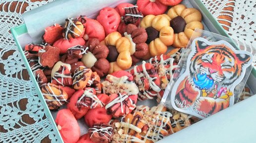 Коробка печенья 10 видов из одного теста. Отличная идея для подарка на Новый год.