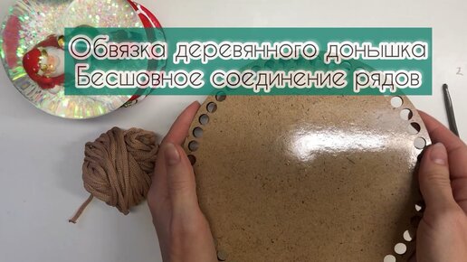 вяжу теперь только так! Обвязка деревянного донышка, бесшовное соединение рядов #вязаниекрючком #идеидлявязания #корзинаизшнура #полиэфирныйшнур #вязание #knitting #мамавдекрете