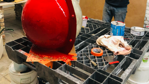 Форма для вазона стеклопластиковая. Часть 1: нанесение гелькоута на подготовленную мастер модель шара