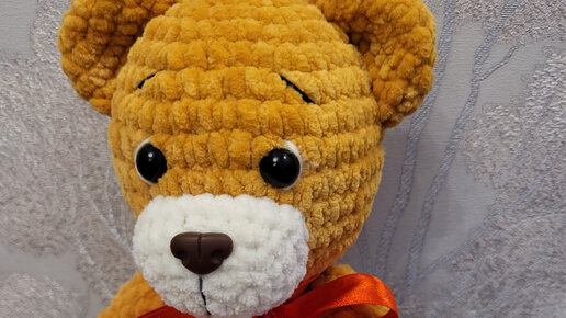 Видеообзор. Плюшевый Мишка с красным бантом, вязаный крючком