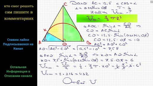 Геометрия В прямой круговой конус вписан полушар, основание которого лежит на основании конуса. Найдите объем полушара, если образующая