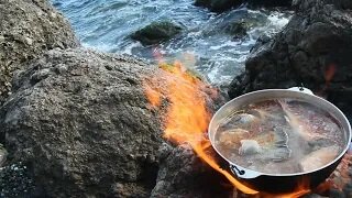 РЫБНАЯ СОЛЯНКА В КАЗАНЕ НА КОСТРЕ!!!