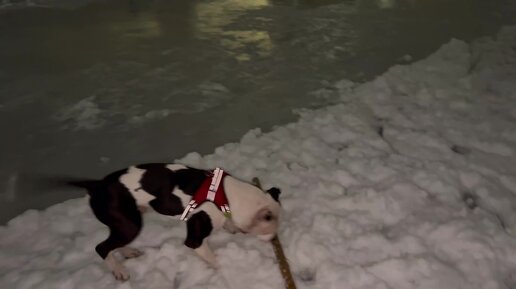Стаффорд чистит снег на хоккейной площадке