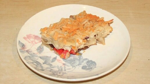 Запеканка из макарон с морепродуктами и соусом бешамель.
