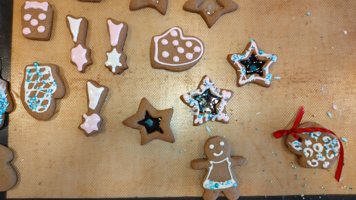 Новогодний пряник с прозрачным декором. Все этапы производства.