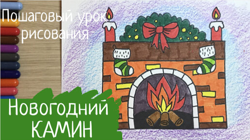 Новогодние рисунки для срисовки. Новогодний камин рисунок. Новый год рисунок. Рождество рисунок. Карандаши и краски.