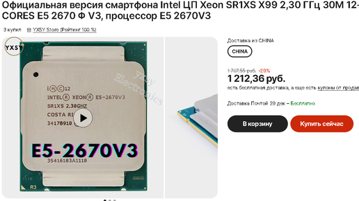 Официальная версия смартфона Intel ЦП Xeon SR1XS X99 2,30 ГГц 30M 12-CORES E5 2670 Φ V3, процессор E5 2670V3