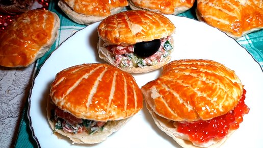 Рецепт праздничной Закуски "Ракушки" из слоеного теста с начинкой. Закуски на Новый год