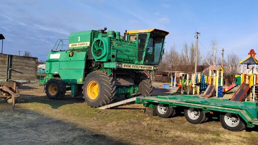 Комбайн Дон - 1500б заезжает на низкорамник.