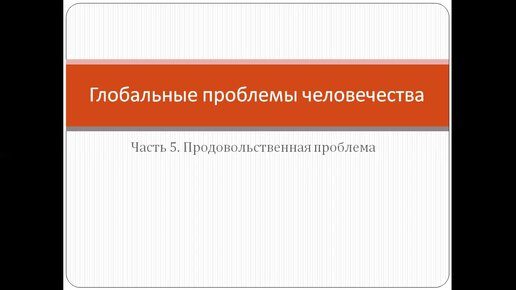 Продовольственные проблемы человечества