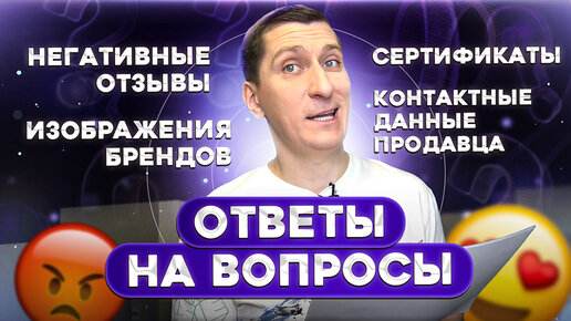 Негативные отзывы, изображения брендов, сертификаты, контактные данные продавца