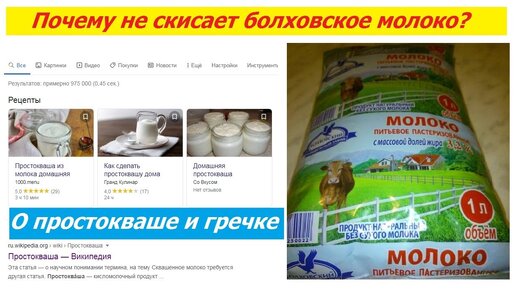 0874, О простокваше, гречка, залитая простоквашей, отзыв о молоке болховского сыродельного завода,