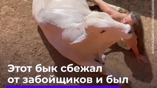 Агрессивный бык стал почти ручным, когда встретил своего человека
