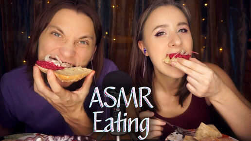 АСМР ИТИНГ х2 🍙 Роллы по Русски и Супергерой Баба Лена 🍙 ASMR Eating x2