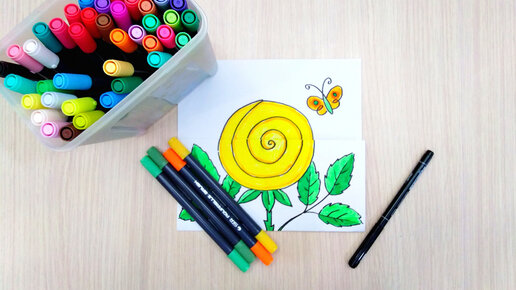 Рисование с секретом. Прячем улитку в розе