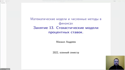 Занятие 13. 2022-12-07. Стохастические модели процентных ставок.