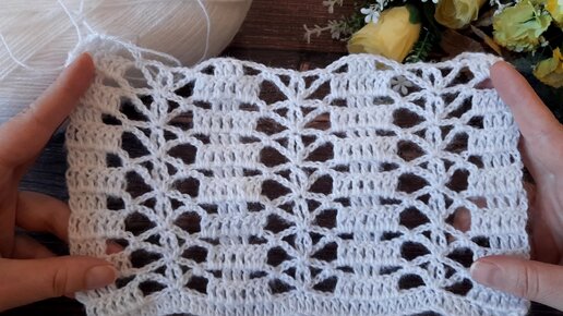 ВСЕГО 2 ряда для вязания узора с ажурными дорожками КРЮЧКОМ.