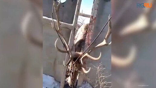 В Якутии спасли оленя, застрявшего рогами между бетонными плитами
