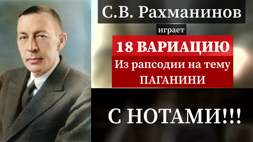 Для Души! Рахманинов Играет XVIII Вариацию из Рапсодии на Тему Паганини. + Ноты