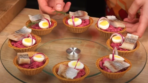 Тарталетки со свеклой и сельдью