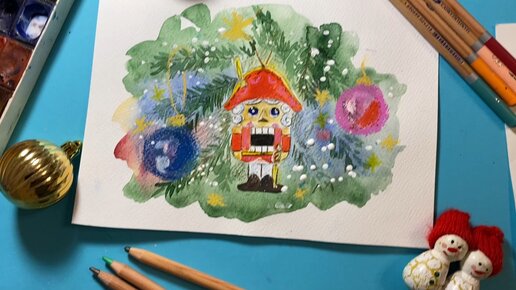 Рисуем щелкунчика на ёлке. Новогодние рисунки #рисоватьпросто #рисуемпоэтапно #акварельныйрисунок #рисуемкаждыйдень