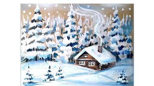 🌲❄️🏠❄️Домик в зимнем лесу. Рисунок гуашью на крафтовой бумаге.❄️🏠❄️🌲