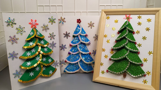Новогодняя объёмная открытка. ЕЛКА. С пайетками. Своими руками.