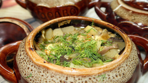 Потрясающе ароматное и вкусное жаркое в горшочках. Свинина с картофелем и грибами в духовке